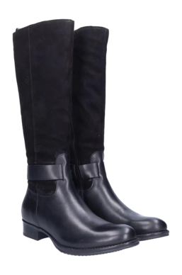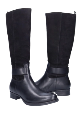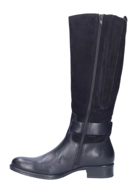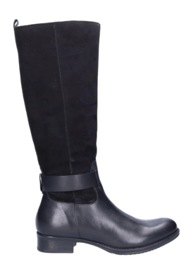 Der Bayston Damenstiefel der bekannten niederländischen Marke JJ Footwear ist aus hochwertigem Leder gefertigt. Der Stiefel hat einen glatten Lederfuß und einen Schaft aus Nubuck. Der Riemen verleiht dem Stiefel einen stilvollen Look. Die Stiefel sind von hoher Qualität und haben neben einer Schuhgröße auch eine Wadengröße, wodurch der Schaft perfekt sitzt.