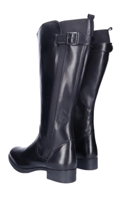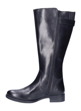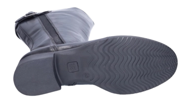 Dieses Modell namens Kempten von JJ Footwear besteht aus weichem Leder. Der schwarze schlichte Stiefel ist ein echter Klassiker, der in keinem Kleiderschrank fehlen sollte. Egal ob zum Kleid, zur Jeans oder zum Rock – mit diesen Stiefeln machen Sie immer einen tollen Eindruck. Der flache Absatz von 2,5 cm und das herausnehmbare Fußbett in der Breite G machen den Stiefel sehr bequem. Er ist mit Filz gefüttert und für Frauen mit einer Wadenbreite von M/L geeignet. Das grobe Profil gibt Ihnen einen guten Halt.